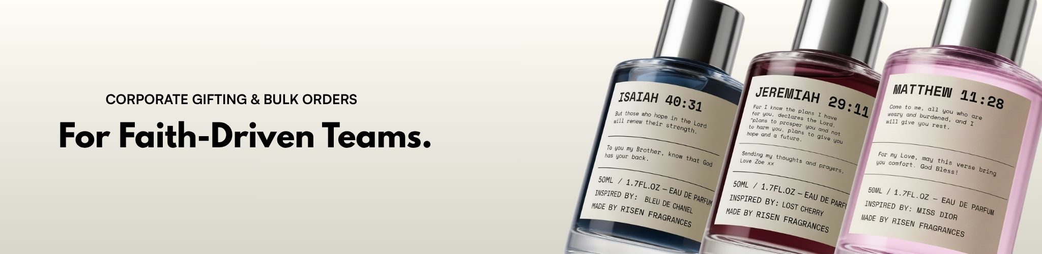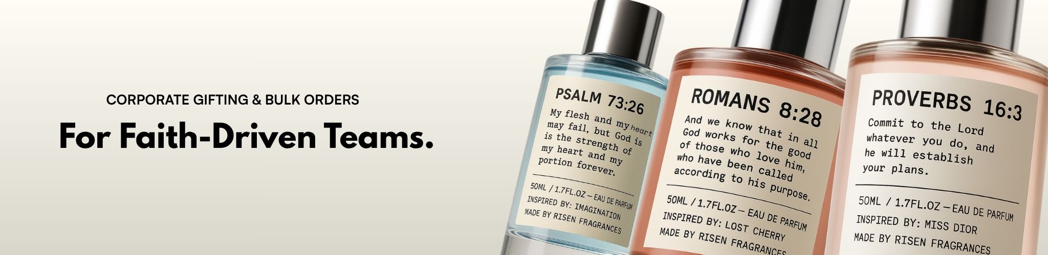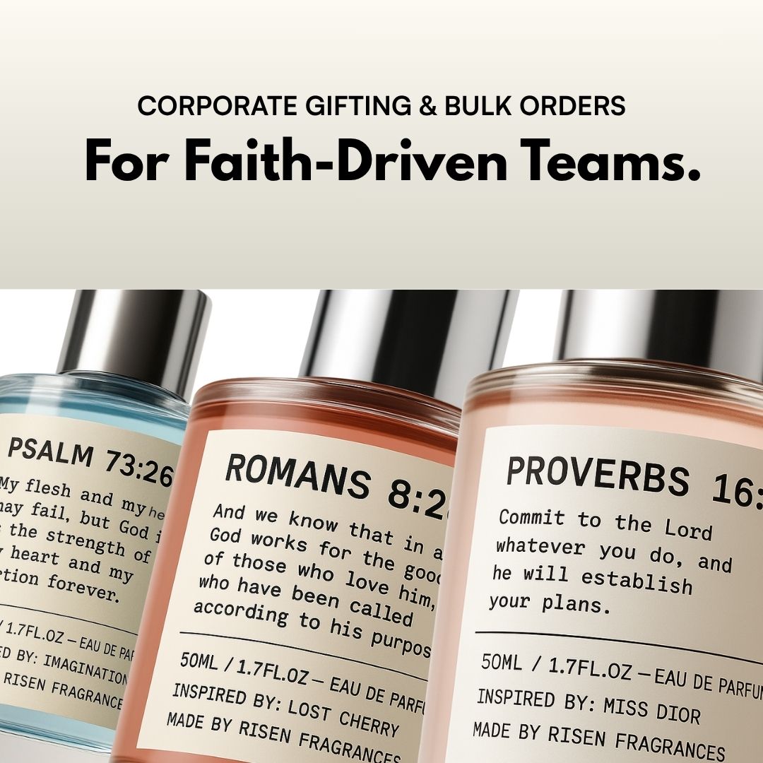 Risen Fragrances are the perfect gift for faith-driven teams, clients, or event attendees.